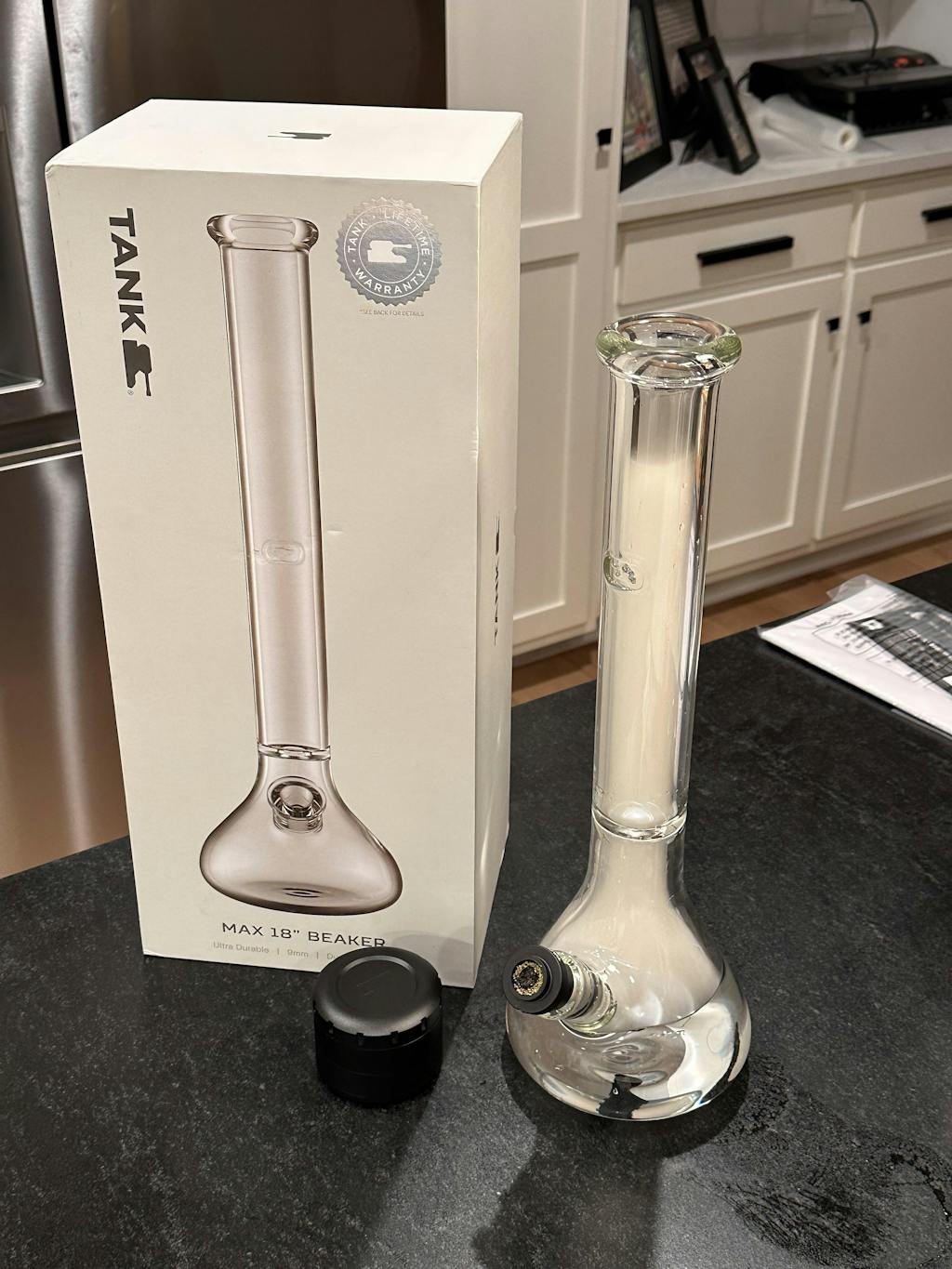 You've asked and we delivered. This Tank Beaker stands at a massive 18 inches tall and is made to last with handblown 9mm Tank DuroTec Glass. Prepare your lungs for the Tank MAX! Crafted for durability and function, this is the beaker that stays in your arsenal for years. Comes with a FREE MAX downstem and a FREE bowl. The Tank Lifetime Warranty is included with purchase.
